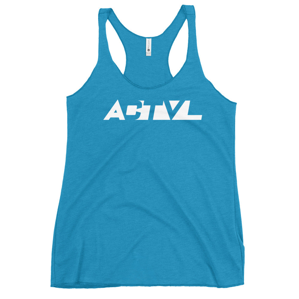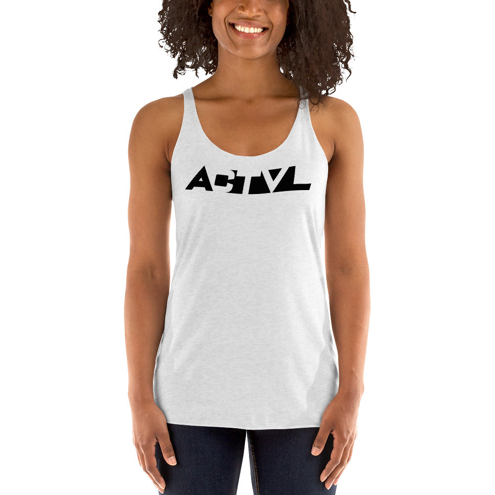 This racerback tank is soft, lightweight, and form-fitting with a flattering cut and raw edge seams for an edgy touch.